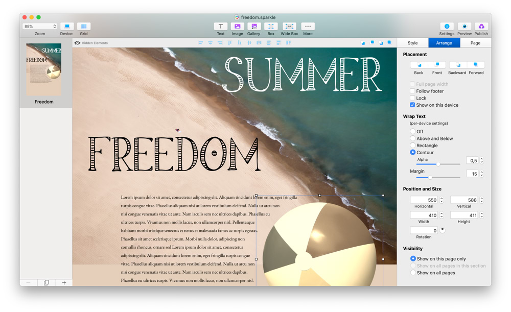 We put a significant amount of engineering work into this, to modernize and improve the efficiency of Sparkle, so this called for a redesign of the toolbar, which we hadn’t significantly touched since Sparkle 1.0. As for our original release over 4 years ago, the new toolbar and format bar icons were designed by the amazingly talented Wolfgang Bartelme.