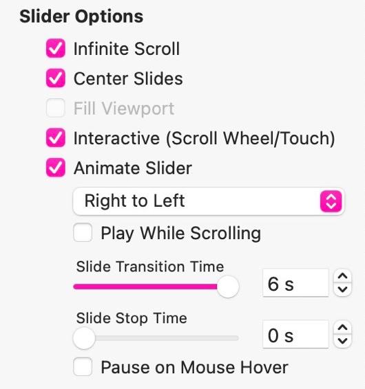 Im Slider-Modus stehen dem Raster mehrere spezifische Optionen zur Verfügung: