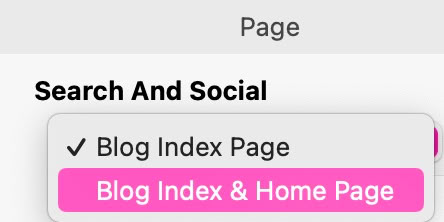 Typischerweise ist dies der Fall, wenn Ihre Blog-Indexseite AUCH Ihre Website-Startseite ist. Sie können Ihre Indexseite zur Startseite machen, indem Sie sie im Seitenbereich links in der Oberfläche auswählen und dann im Reiter Seiten rechts den Seitentyp ändern.
