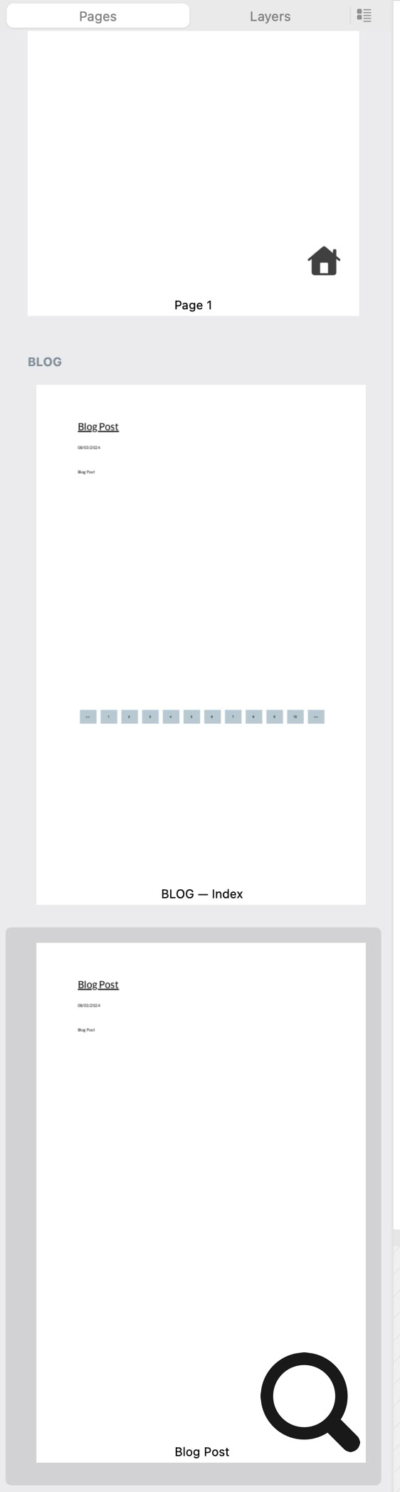 Diese Seiten sehen Sie im Seitenbereich links in der Oberfläche. Vorerst können Sie die Indexseite ignorieren – schauen Sie sich nur die Seite Blog-Beitrag an. So sieht sie auf der Arbeitsfläche aus.