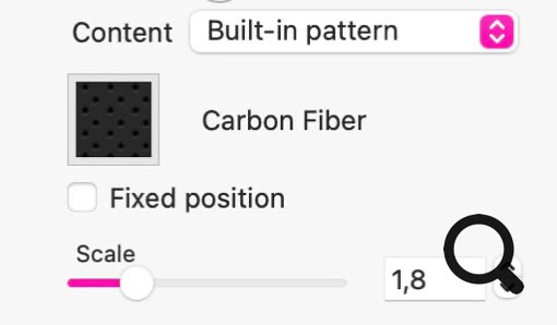 Die Optionen Eingebautes Muster und Benutzerdefiniertes Muster füllen Ihre Box mit einer der vielen von Sitely angebotenen Musterfüllungen. Diese Muster funktionieren genauso wie beim Einsatz als Seitenhintergrund. Sie können den Maßstab des Musters so anpassen, dass er am besten zu Ihrem Design passt.