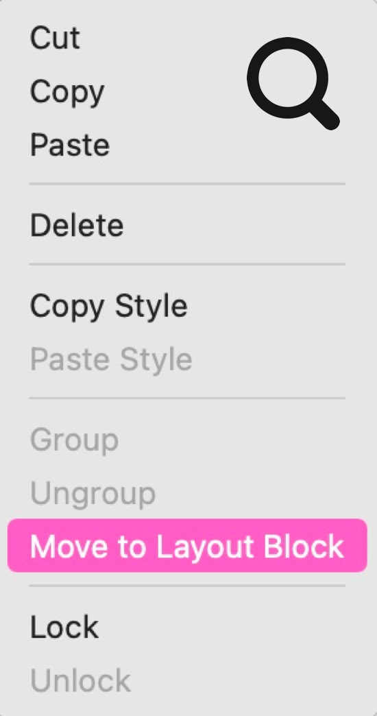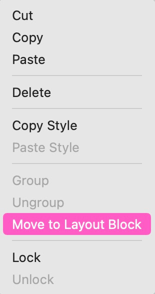 Layout-Blöcke sind eine weitere Form der Gruppierung, mit der Sie Ihre Seiten in Blöcke unterteilen können. Sie könnten z. B. einen Block für die Navigation haben, einen weiteren für den Hero-Bereich und weitere Blöcke für Features, Produkte, Teammitglieder usw. Die Idee dahinter ist, dass jeder Block Ihrer Seite eine einzelne Idee oder ein Thema ausdrückt. So lassen sich Blöcke leicht gestalten, um sie optisch deutlicher voneinander abzugrenzen. Außerdem haben sie einen großen Vorteil beim Umstrukturieren Ihrer Seiten. Im Grunde gilt: Wenn Sie Elemente in einem Block zusammenfassen, kann der Block auf der Seite nach oben oder unten verschoben werden – alle anderen Blöcke über oder unter dem verschobenen Block rücken automatisch mit. Zudem bleiben alle im Layout-Block enthaltenen Elemente (einschließlich Gruppen) in ihrer exakten Position innerhalb des Blocks erhalten und wandern mit. In diesem Leitfaden gibt es einen eigenen Abschnitt zu Layout-Blöcken – schauen Sie ihn sich an. Um derzeit Layout-Blöcke zu erstellen, können Sie sie entweder wie jedes andere Element zu Ihrer Seite hinzufügen, oder Sie wählen alle Elemente aus, die in einen Layout-Block umgewandelt werden sollen, und öffnen per Rechtsklick bzw. Ctrl-Klick das Kontextmenü. Wählen Sie anschließend die Option 'In Layout-Block verschieben'