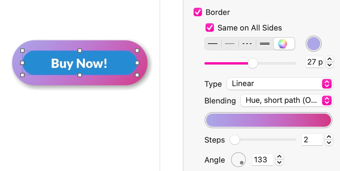 Verläufe können auch auf Rahmen von Boxen und Schaltflächen angewendet werden: