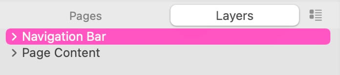 Im Ebenenbedienfeld sehen Sie, dass der Gruppe ein Name zugewiesen wurde – in diesem Beispiel ‚Navigationsleiste‘ – und dass alle einzelnen Elemente unter dieser Gruppenüberschrift organisiert sind. Ist die Gruppe eingeklappt, sehen wir nur den Gruppennamen Navigationsleiste, was das Auffinden und Auswählen erleichtert.