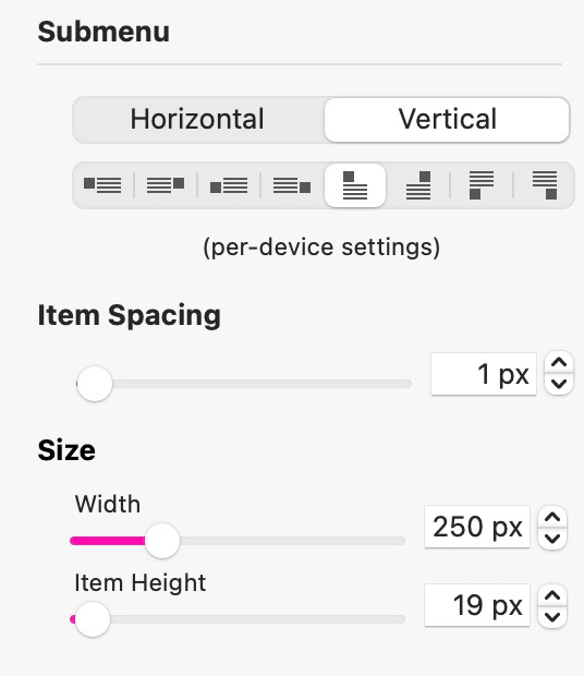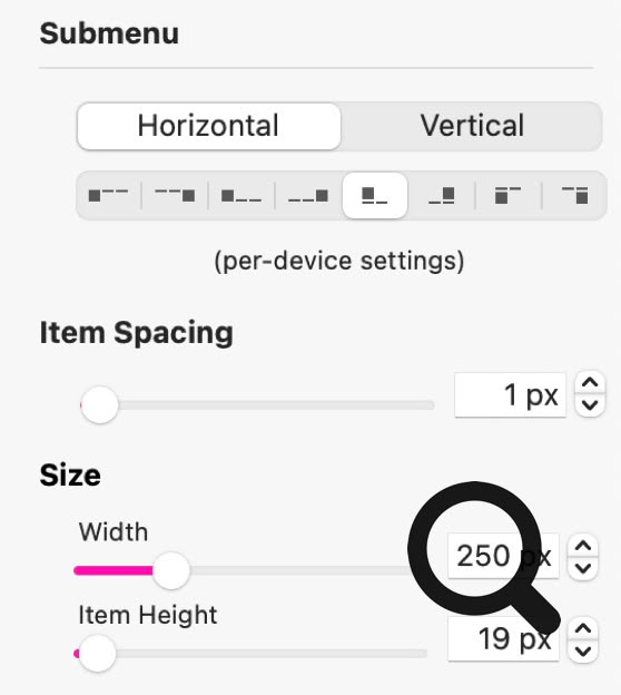 Es gibt außerdem eine Option für den Elementabstand, die den Abstand zwischen den Elementen im Menü festlegt.