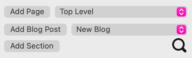Um ein Dropdown zu erstellen, fügen Sie zunächst ein neues Top-Level-Element zum Menü hinzu, das als Dropdown-Link dient. Klicken Sie bei ausgewähltem Element auf das Ordnersymbol. Dadurch wird eine Seite unter dem Dropdown erstellt und ein kleiner Pfeil neben dem Namen des Dropdown-Links angezeigt. Ihr Dropdown-Link wird nun zu einem Link, der ein Dropdown mit Seitenlinks öffnet. Um weitere Seiten zum Dropdown hinzuzufügen, klicken Sie auf eine der enthaltenen Seiten und klicken Sie auf das ‘+’-Symbol. Fügen Sie so viele Seiten hinzu, wie Sie benötigen.