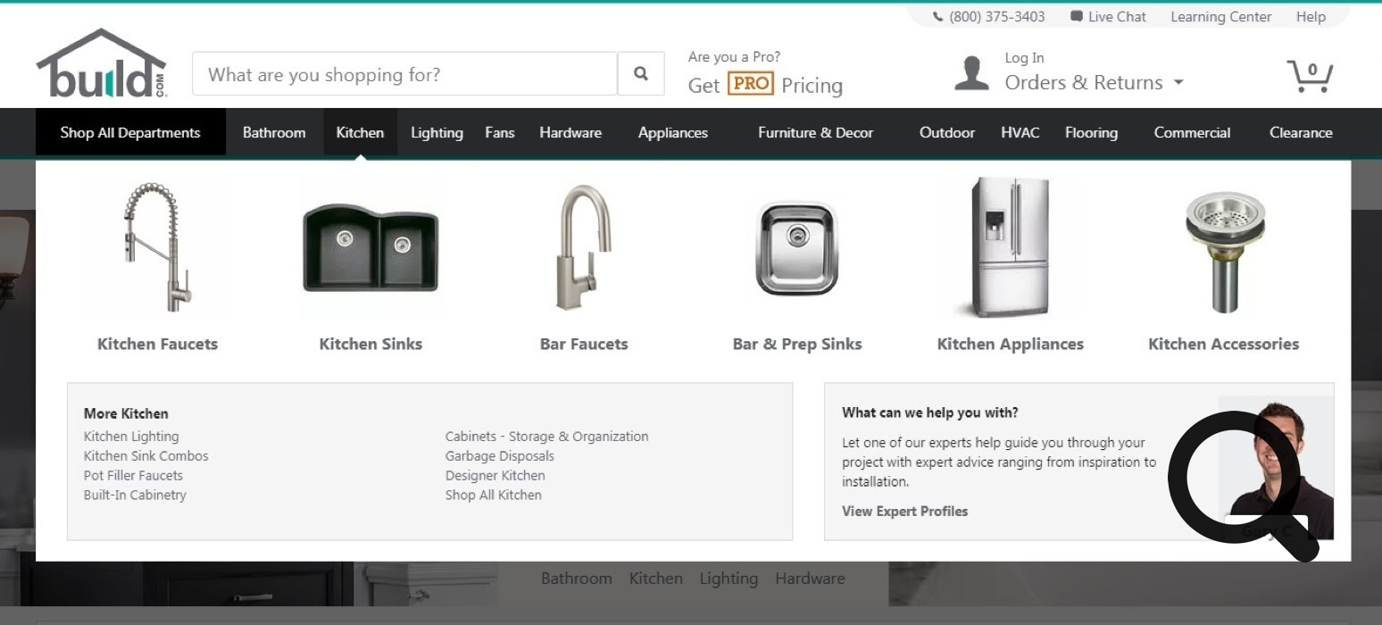 Halten Sie Top-Level-Elemente möglichst knapp. Zu viele Auswahlmöglichkeiten als Dropdown-Optionen können Nutzer davon abhalten, Ihre Site weiter zu erkunden. Halten Sie die Top-Level-Links bei etwa fünf oder sechs Optionen und begrenzen Sie – falls vorhanden – die Anzahl der Dropdown-Einträge auf nicht mehr als vier oder fünf. Wenn Sie unbedingt viele Optionen anbieten müssen, etwa in einem E-Commerce-Shop mit vielen Produktkategorien, sollten Sie stattdessen ein Mega-Menü in Betracht ziehen. Dieses kann in einem Sitely-Layoutblock oder Pop-up erstellt werden, das so eingestellt ist, dass es sichtbar wird, wenn ein Top-Level-Menülink angeklickt wird. Solche Menüs finden Sie auf vielen Websites mit zahlreichen Produktgruppen, wie unten dargestellt.