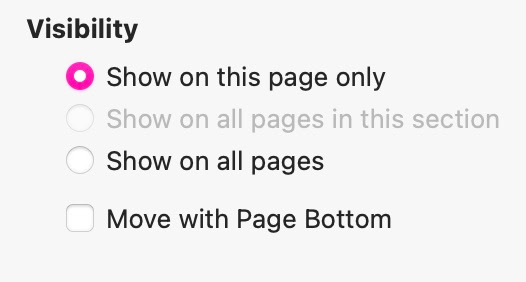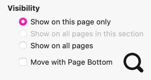 The Visibility section allows you to choose on which pages to show the menu. You can choose to Show on the current page only, all pages within the current page group, or Show on all pages in the site. You also have the option of having the menu Move with the page Bottom. This option is ideal if you have a menu of links in the footer section of your web pages, and you want to keep it glued to the bottom of the pages.