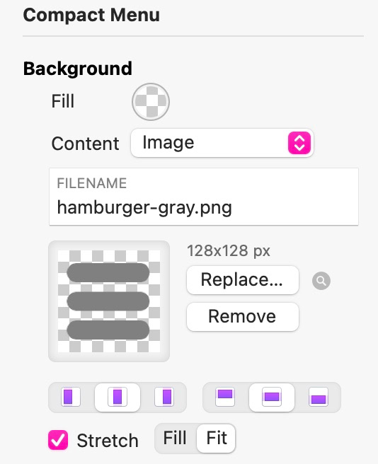 The icon itself can be changed by selecting the menu item in the menu list in the style panel . If you don’t want to use an icon, you can simply have a text link. Just give the menu Item a label and remove the icon. Your Compact menu will then be a simple text link like this. When this link is clicked, the submenu items will appear.