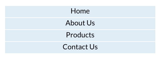 Just like everything else in Sitely, you can apply a whole range of styling options to your menus. All the styling options are found in Sitely’s familiar style panel. You can apply background colours, adjust fonts and sizes, add borders and corner rounding, and set text alignment . By applying different styling options you can create a text-only menu, one that looks like a series of buttons or tabs and apply mouse hover effects. Here are few examples.