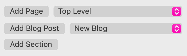 When adding page groups to a website, the page group link won’t actually go to a physical page when it’s clicked. Instead, it will open the drop-down to display the pages within that group. By way of practical example, assume we want a simple website comprising of a Home page, an About Us page, a Products group with two pages - one for Smartphones and one for Tablet Devices. We may also want a Contact Us page. To have Sitely automatically create this menu for us, all we need to do is add the pages and groups in the Pages panel on the left of the Sitely Interface. When adding Top level pages, click the ‘+’ icon at the foot of the pages panel and choose Top Level from the Drop-down selector next to Add Page.