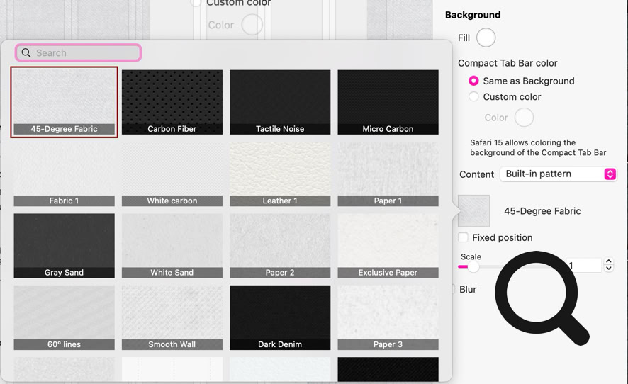 These options allow you to set up the visual appearance of your page background. At its simplest level, you can have a background fill colour that covers the entire page. However, by using the ‘Content’ drop-down, you can choose a fill pattern or a video background. If you choose a fill pattern, you’ll have the choice of Built-in or Custom patterns. Furthermore, you can decide to have the pattern fixed in the window (where the pattern remains static in the browser window and your page scrolls over it), or you can have the background scroll with the page content. Other options allow you to scale or blur the pattern. If you choose a video background, you can select a video from a variety of sources, including video streaming platforms. Again, you can choose to have the video fixed in the window, or have it scroll as part of the web page. If you choose the fixed position option, the video will fill the entire browser window. These background options will open up additional options on the page panel, which are illustrated below.