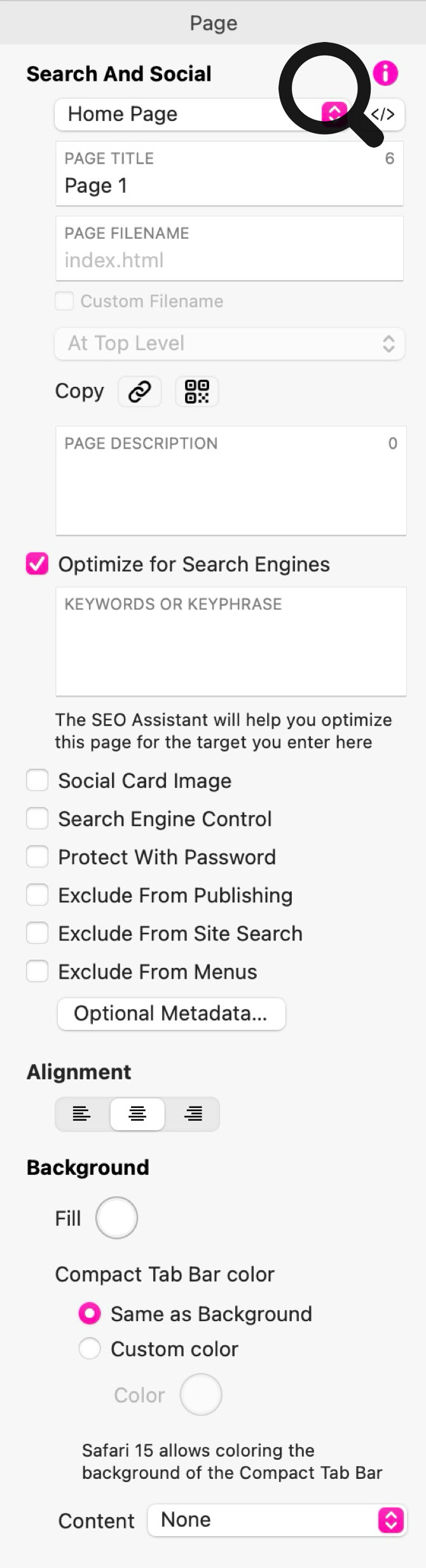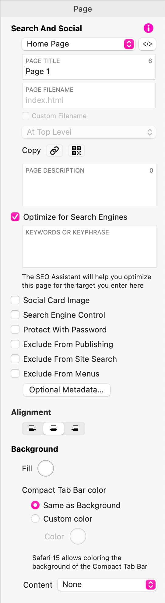Every page needs a basic setup to get started. When you begin a new site, the first page automatically becomes the "Home Page," while others are designated as "Regular Pages."
