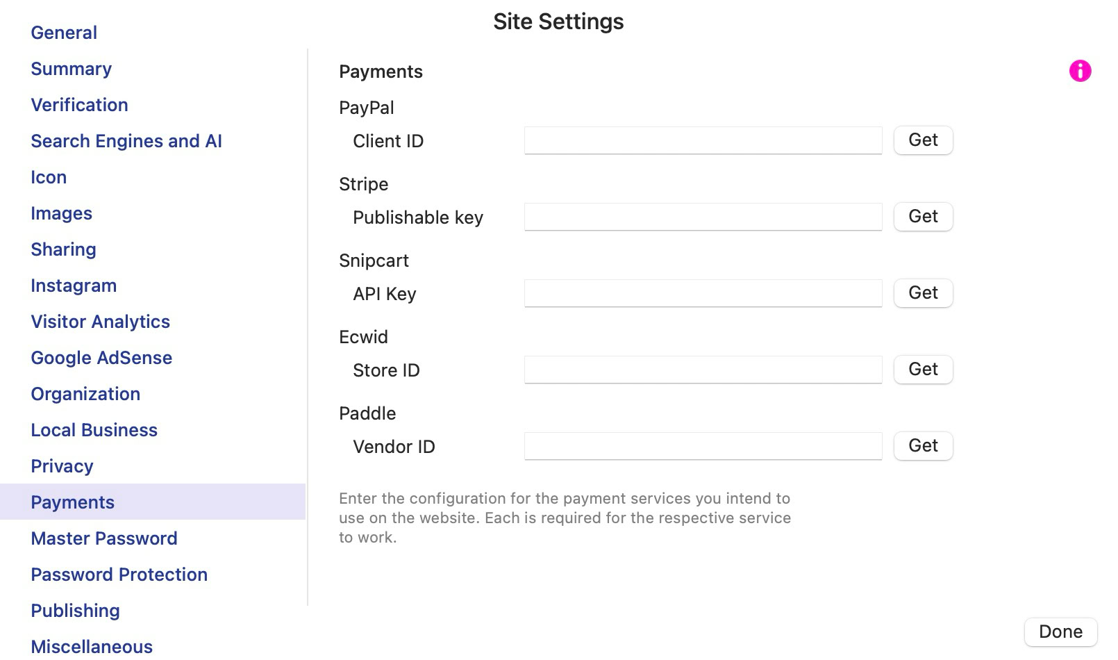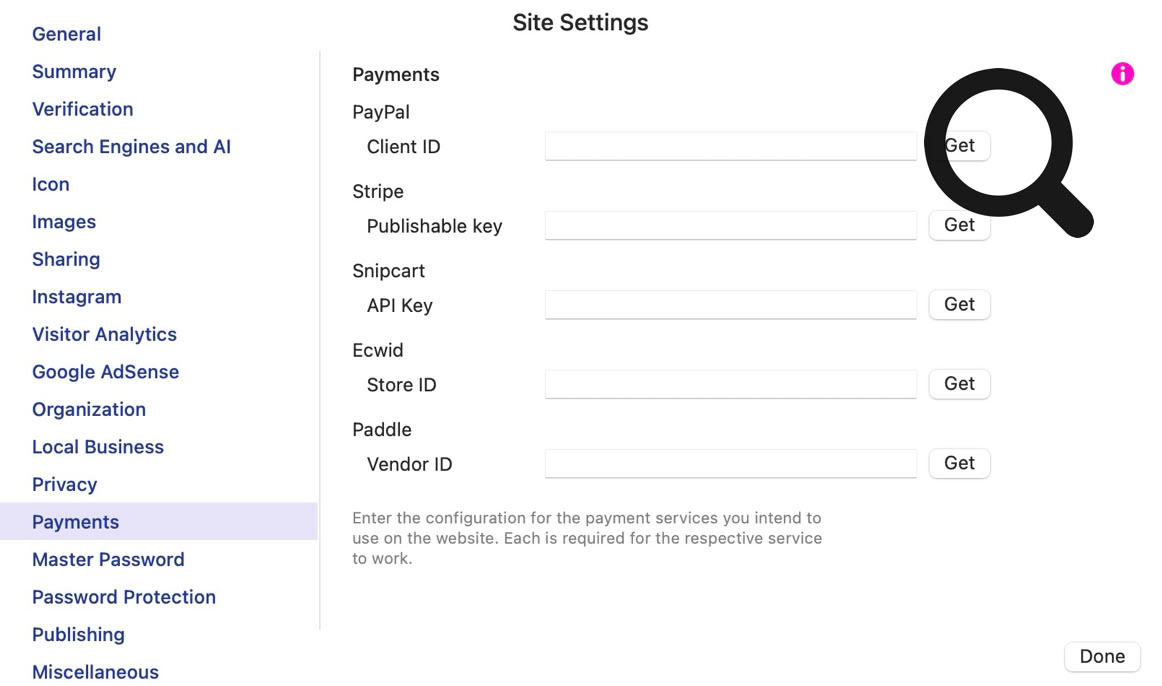 Los ajustes del sitio son una parte importante para lograr que tu sitio web sea visible en Internet - sin gran parte de la información que proporciones aquí, tu sitio web será simplemente otra página en el “agujero negro” de la World Wide Web. Los visitantes y los motores de búsqueda necesitan saber que tu sitio existe, y la información proporcionada aquí contribuye en gran medida a garantizar que todos puedan encontrar tu sitio de Sitely cuidadosamente elaborado..