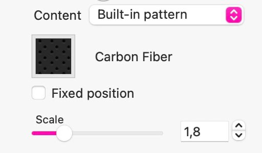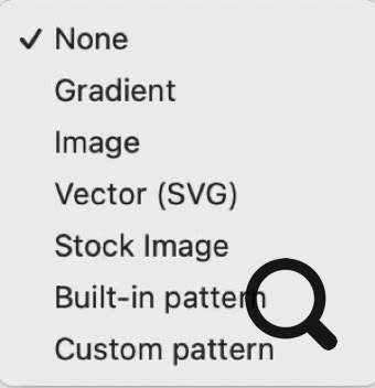 Las opciones de patrón Integrado y Personalizado rellenarán tu caja con uno de los muchos patrones de relleno que ofrece Sitely. Estos patrones funcionan exactamente igual que cuando se usan como relleno de fondo de página. Puedes ajustar la escala del patrón para que se adapte mejor a tu diseño.