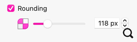 Redondeo: Esta opción añade redondeo de esquinas a tu caja. Puedes elegir redondear las cuatro esquinas de forma idéntica o seleccionar de manera específica cómo y qué esquinas se redondean. Si la caja es un cuadrado perfecto, añadir redondeo a las cuatro esquinas puede convertir tu caja en un círculo.