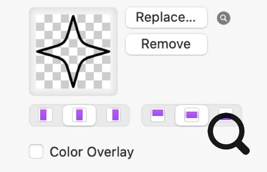 Observa que es negro. Esto resalta otra ventaja de usar gráficos SVG. Puedes cambiar el color/tono del gráfico utilizando la opción de superposición de color en el panel Estilo. Al marcar esta opción podrás seleccionar un color y aplicarlo al SVG. Nota: el SVG no tiene que estar contenido dentro de una caja para que esta opción funcione: puedes simplemente arrastrar el SVG al lienzo, donde se colocará como una imagen en lugar de como una caja.