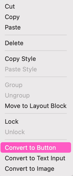 Dado que las cajas son muy simples de crear, son el elemento ideal para usar al definir por primera vez el diseño de tu página (wireframing). Pueden emular imágenes, áreas de fondo, botones y campos de formulario para darte una vista rápida de cómo se verá tu página. Una vez que tengas tu diseño básico de wireframe y empieces a trabajar de verdad en tu contenido, estaría bien poder convertir tus cajas en algunos de los elementos más comunes sin tener que empezar desde cero. No te preocupes, Sitely te lo pone fácil. Puedes hacer clic con el botón derecho sobre una caja y elegir una de las opciones de conversión del menú contextual.
