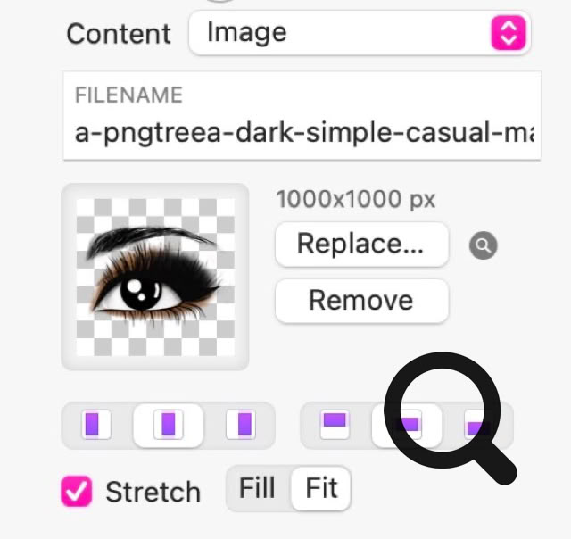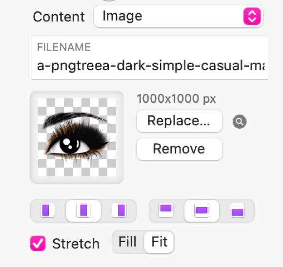 Si eliges la opción Imagen, puedes seleccionar una imagen de tu disco para rellenar la caja. Esto te dará otras opciones sobre si rellenar o ajustar la imagen dentro de la caja. Solo marca la casilla Estirar y haz tu elección. Rellenar la caja ampliará la imagen para que ocupe toda la caja (esto puede recortar parte de la imagen). Si eliges Ajustar la imagen, no se recortará: se ampliará o reducirá para que la imagen completa quepa dentro de la caja. Dependiendo de la relación de aspecto de la imagen, esta opción puede crear un efecto de bandas (letterbox), dejando espacio a ambos lados o arriba y abajo de la imagen. Cuando eliges la opción de rellenar, también podrás alinear la imagen dentro de la caja: a la izquierda, derecha o centrado; o arriba, abajo o en el centro.