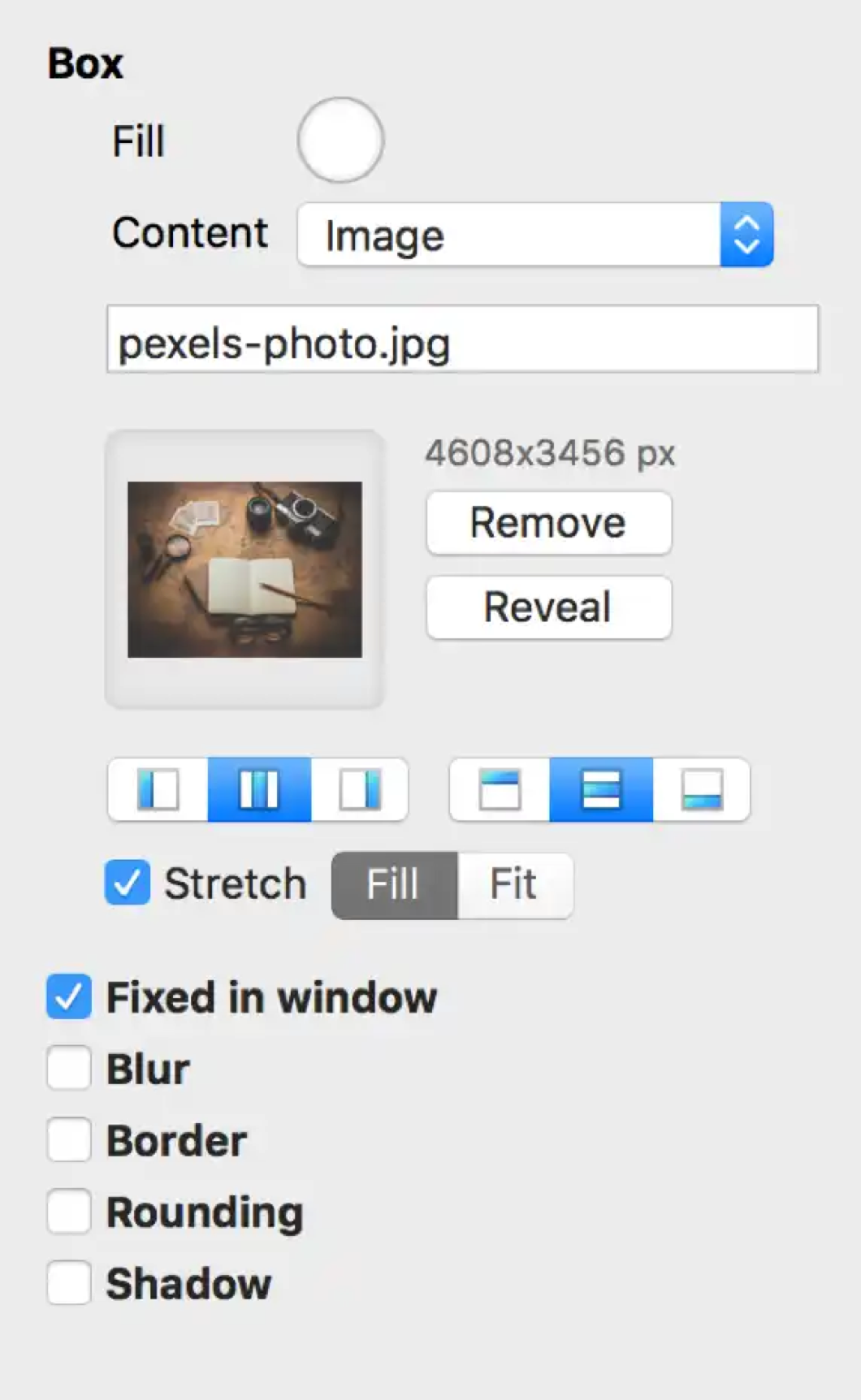 Entonces, ¿por dónde empiezas? Elige una imagen que refuerce el mensaje que buscas. Ahora crea una caja, rellénala con esa imagen y prepárate para el cambio de juego: haz clic en "Fijo en ventana". ¡Boom! Acabas de llevar tu diseño al 11. Fácil, ¿no? Aquí te cuento cómo funciona.