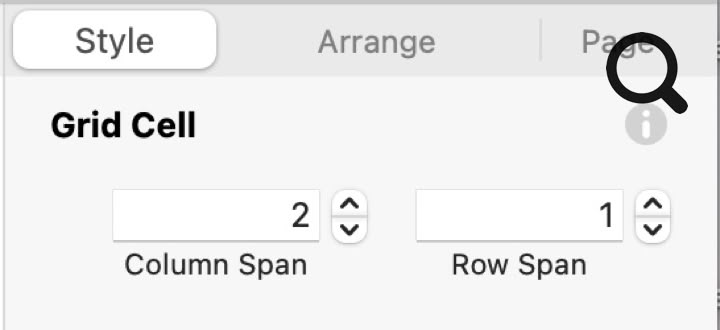 Con la celda seleccionada, ve al panel de estilos y establece el número de filas y/o columnas que te gustaría que esa celda abarcara. Así es como se ve la opción: