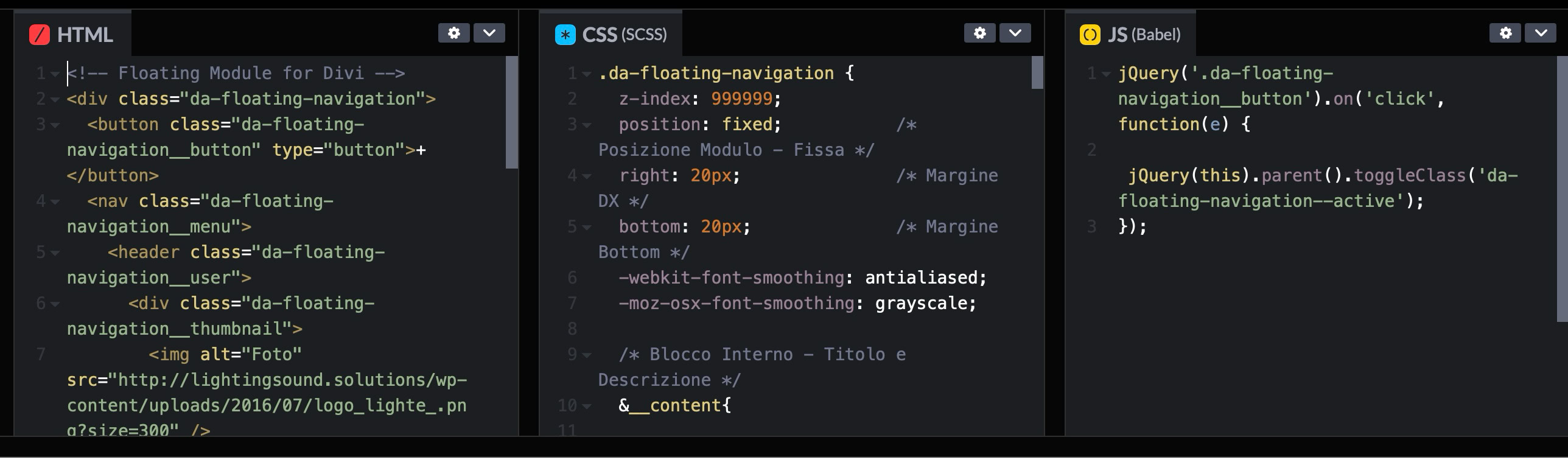 Estas opciones serán útiles si parte de tu código incrustado incluye enlaces a hojas de estilo o a código que debas alojar como parte de tu sitio web. Un ejemplo típico de cuándo pueden ser útiles estas opciones es cuando usas contenido de sitios como CodePen. Por ejemplo, puede que te encuentres con código dividido en tres secciones: el HTML para incrustar en la página, el CSS para dar estilo al contenido y el JS para que todo funcione. Todo esto puede copiarse y pegarse en archivos individuales e incluirse como parte de tu proyecto de Sitely.