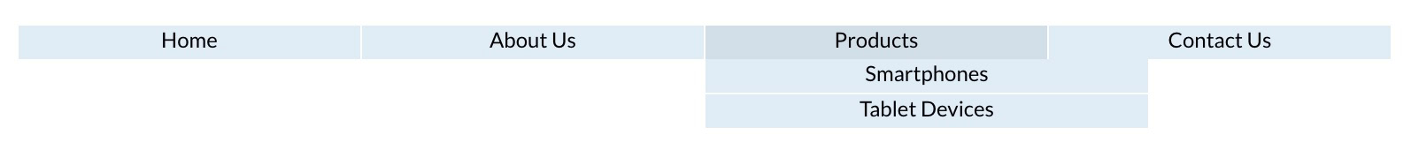 Al crear enlaces de desplegable con un gran número de elementos, ten en cuenta que probablemente tendrás que darle un fondo a los enlaces del desplegable. Si los dejas transparentes, puede que resulten difíciles de leer para los usuarios, ya que el desplegable probablemente cubrirá otros elementos de la página al activarse.