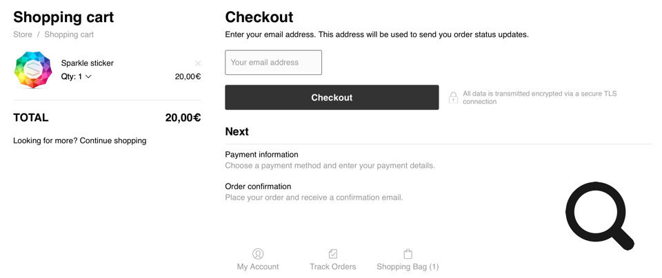 Cuando un cliente agrega un producto a su carrito de compras, este aparecerá en la página e incluirá un flujo de pago para el cliente, como este: