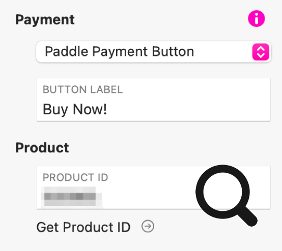 El botón de Paddle solo necesita el ID del producto, desde la página del producto de Paddle.