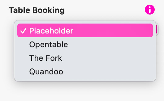 El widget de reserva de mesas integra algunos servicios de reserva populares para que la integración sea inmediata. Los servicios actualmente compatibles son: