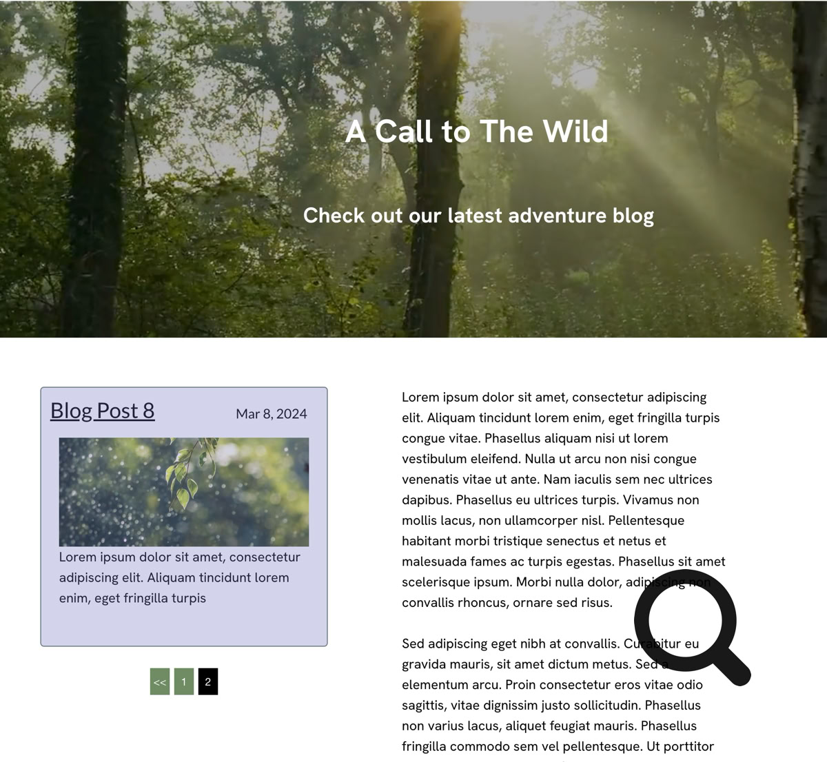 Mais ce n’est pas tout. Si vous retournez sur la page Index du blog, vous verrez l’entrée de résumé sur la page. Elle sera contenue dans sa propre boîte, ce qui vous permet de la déplacer sur la page d’index pour l’adapter aux autres éléments. Un bouton de page s’affichera également sous l’entrée. À mesure que vous ajoutez des articles, la page d’index commencera à se remplir. Vous pouvez définir le nombre d’articles à afficher par index en sélectionnant la boîte d’index sur la page, puis en définissant le nombre et l’espacement des entrées dans le panneau de styles. Une fois ce nombre atteint, Sitely créera des pages d’index supplémentaires et ajoutera d’autres boutons à l’index. Cela permet aux utilisateurs de remonter à travers tous les articles précédents.