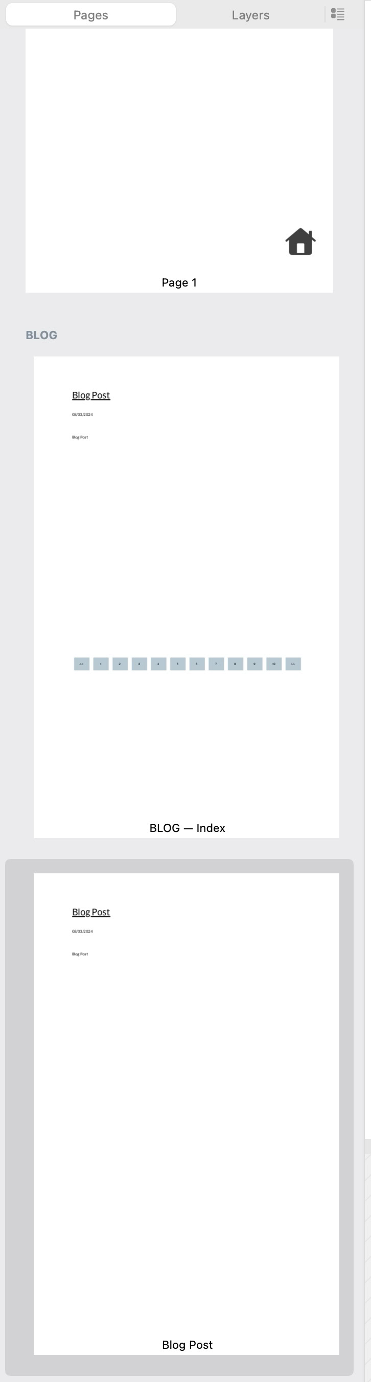 Vous verrez ces pages dans le panneau Pages à gauche de l’interface. Pour l’instant, oubliez la page d’index : concentrez-vous sur la page Article de blog. Voici à quoi elle ressemble sur la zone de travail.