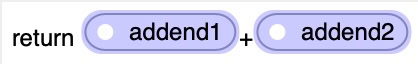 « addend1 » et « addend2 » sont des champs de saisie sur la page. Ce sont des éléments « Saisie de texte » classiques disponibles dans la boîte à outils de Sitely. Ils ont été tous deux définis sur « Exiger un nombre ». L’opérateur « + » entre eux indique à Sitely d’additionner les deux nombres. Vous trouverez ci‑dessous quelques exemples de formules mathématiques de base pouvant être définies dans un champ intelligent « Calculatrice ».