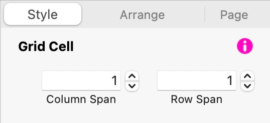 Si vous ne voyez pas l’option Cellule de grille dans le panneau de style, c’est que vous n’avez pas sélectionné de cellule. Cliquez dans une cellule pour la mettre en évidence ; l’option apparaîtra alors. Vous savez qu’une cellule est sélectionnée sur la zone de travail car elle affiche des poignées autour du périmètre en forme de petits X.