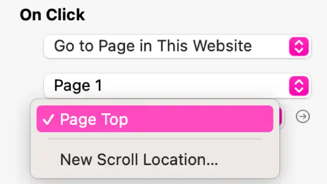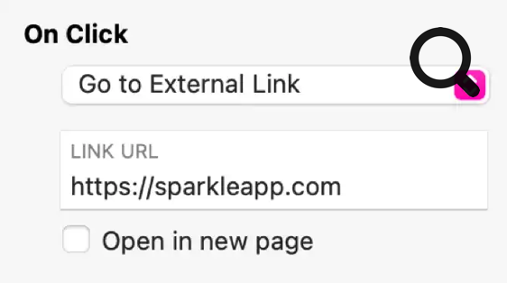 L'inspecteur "Au clic" de Sitely vous permet d'ajouter un lien ou une action à n'importe quel texte, image, bouton, élément de menu ou groupe..