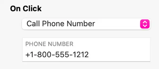 L'option Appeler un numéro de téléphone fera en sorte que l'appareil du visiteur du site passe un appel téléphonique au numéro spécifié (après confirmation). Sur de nombreux appareils de bureau, l'appel téléphonique est souvent acheminé via un logiciel d'appel vidéo.