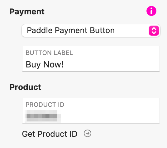 Le bouton Paddle ne nécessite que l’ID du produit, à récupérer sur la page du produit Paddle.
