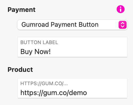 La configuration d’un bouton d’achat Gumroad dans Sitely ne requiert rien d’autre que la configuration du bouton lui-même.