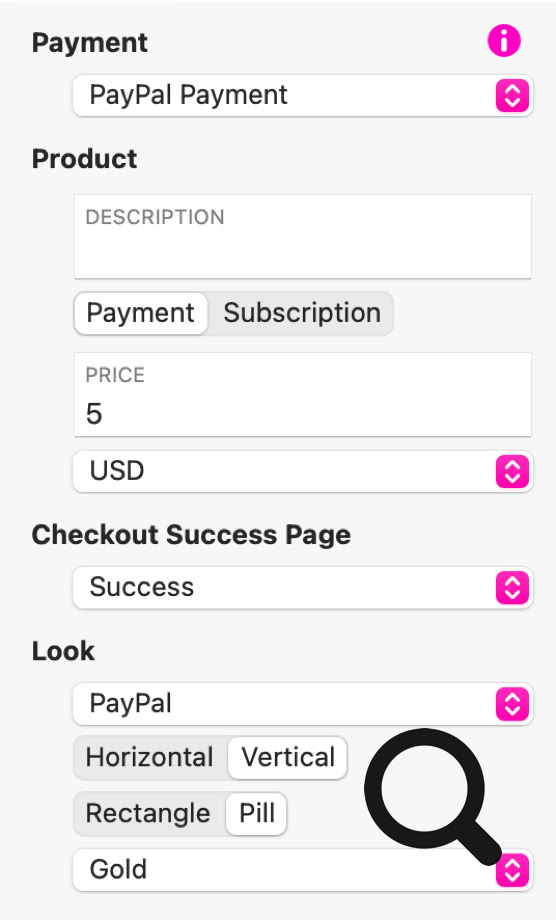 Vous pouvez configurer le bouton pour accepter un paiement ponctuel directement dans Sitely, ou le lier à une offre d’abonnement configurée dans le tableau de bord PayPal.