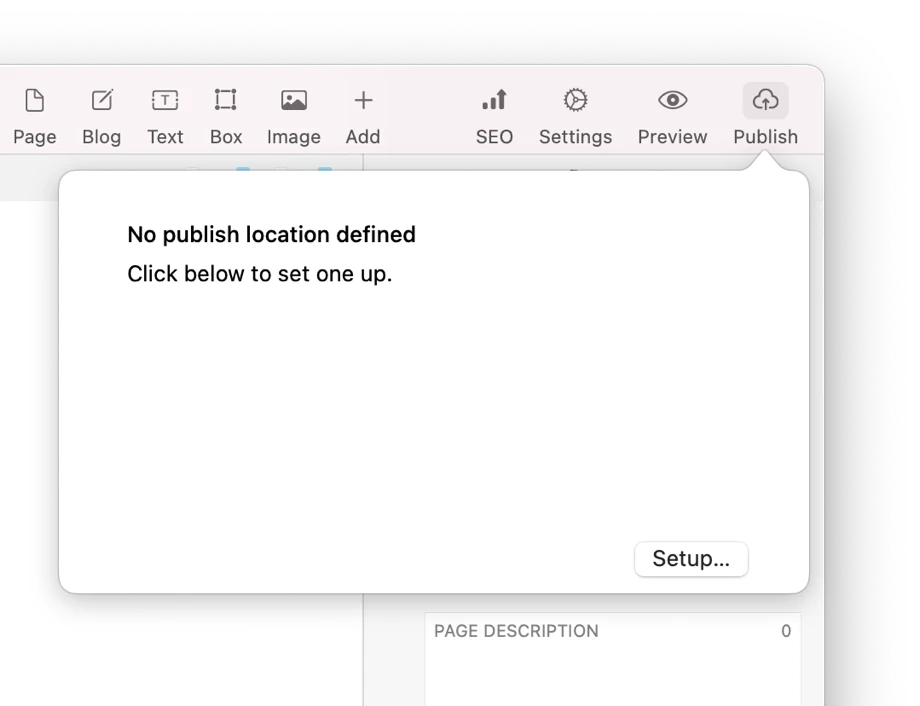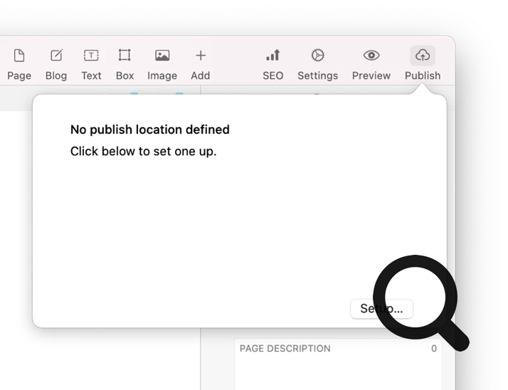 Lors de votre première publication, vous devrez configurer un emplacement. Cliquez simplement sur le bouton "Configurer..." pour commencer.