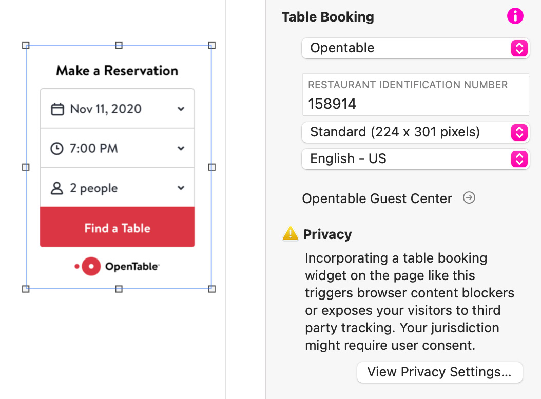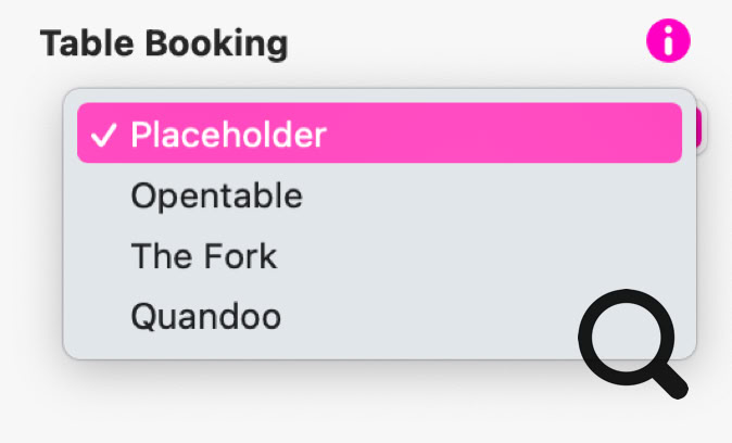 Le widget de réservation de table s'intègre à quelques services populaires de réservation de table, afin de rendre l'intégration immédiate. Les services actuellement pris en charge sont :