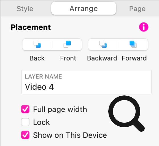 Dans l’onglet Disposition, à droite de l’interface, se trouve une autre option qui vous permet d’utiliser la vidéo de manière plus créative. Par exemple, vous pouvez définir une vidéo en Pleine largeur de page. Cette option fait essentiellement s’étendre la vidéo sur toute la largeur de la fenêtre du navigateur. C’est une excellente option pour créer des en-têtes vidéo et des sections hero pour vos pages.