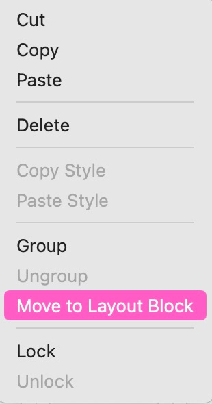 Sebbene aggiungere un blocco all'area di lavoro e poi popolarlo con contenuti funzioni perfettamente, un approccio più semplice potrebbe essere quello di iniziare semplicemente a progettare la tua prima area di contenuto - magari una sezione "hero" per la tua pagina web. Una volta che il contenuto è progettato secondo i tuoi gusti, puoi selezionare tutti gli elementi che compongono la tua sezione "hero", fare clic destro e scegliere "Sposta in blocco di layout" dal menu contestuale.
