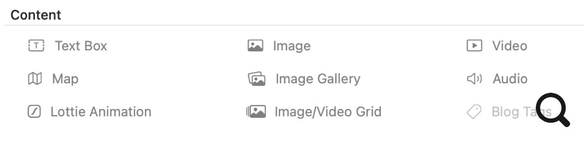 L'opzione Tag del Blog sarà attiva solo se hai creato una pagina blog nel tuo sito web - vedi la sezione sui Blog per ulteriori informazioni.