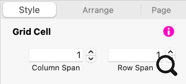 Tuttavia, puoi stilizzare ulteriormente la tua griglia selezionando ciascuna cella e dicendo a Sitely di cambiare la sua dimensione e forma. Ancora una volta, nel pannello di stile, vedrai un'opzione che indica a Sitely quante colonne e/o righe desideri che ciascuna cella occupi nella griglia. L'opzione appare così.