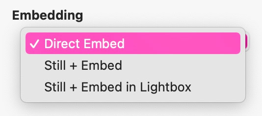 Il passo successivo è decidere come vuoi incorporare il tuo video. Le opzioni sono: